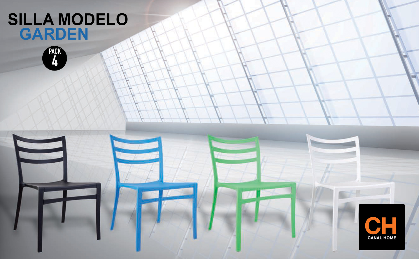 «Pack de 4 sillas apilable, versátil y funcional, indicada tanto para espacios interiores como exteriores. Su diseño encaja con cualquier tipo de decoración»